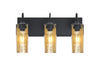 The Duke Gold Vanity is a transitional bath design composed of a gold foil backed glass cylinder, with a compelling textured metallic effect that plays off the gleem of the clear glass component. Mounted off the broad canopy with timeless gooseneck socketholders, the pleasing glow from each shade`s gold foil make for a striking affect along with the prominent display of the lamp filament behind the glass. These stylish and functional luminaries are offered in a beautiful Black finish.