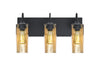The Duke Gold Vanity is a transitional bath design composed of a gold foil backed glass cylinder, with a compelling textured metallic effect that plays off the gleem of the clear glass component. Mounted off the broad canopy with timeless gooseneck socketholders, the pleasing glow from each shade`s gold foil make for a striking affect along with the prominent display of the lamp filament behind the glass. These stylish and functional luminaries are offered in a beautiful Black finish.