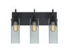 The Juni 10 Blue Vanity is a transitional bath design composed of a transparent blue glass cylinder, with an interesting bubble pattern blown randomly throughout the glass. Mounted off the broad canopy with timeless gooseneck socketholders, the pleasing play of light through each shade`s bubble accents make for a striking affect along with the prominent display of the lamp filament behind the glass. These stylish and functional luminaries are offered in a beautiful Black finish.