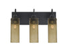 The Juni 10 Latte Vanity is a transitional bath design composed of a transparent latte glass cylinder, with an interesting bubble pattern blown randomly throughout the glass. Mounted off the broad canopy with timeless gooseneck socketholders, the pleasing play of light through each shade`s bubble accents make for a striking affect along with the prominent display of the lamp filament behind the glass. These stylish and functional luminaries are offered in a beautiful Black finish.