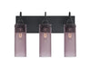 The Juni 10 Plum Vanity is a transitional bath design composed of a transparent plum glass cylinder, with an interesting bubble pattern blown randomly throughout the glass. Mounted off the broad canopy with timeless gooseneck socketholders, the pleasing play of light through each shade`s bubble accents make for a striking affect along with the prominent display of the lamp filament behind the glass. These stylish and functional luminaries are offered in a beautiful Black finish.