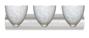 Sasha has a classical bell shape that complements aesthetic, while also built for optimal illumination. Our Carrera glass is a classic yet modern dcor that gives off a soft white light. Clear molten glass is rolled in alabaster powder like frit, and then blown into shape with a semi-clear frosted white inner finish. This dcor is created by rolling molten glass in small bits of white called frit. The smooth satin finish on the clear outer layer is a result of an extensive etching process. This blown glass is handcrafted by a skilled artisan, utilizing century-old techniques passed down from generation to generation. Each piece of this dcor has its own artistic nature that can be individually appreciated. The vanity fixture is equipped with sleek arcing die cast lamp holders and matching radiused rectangular canopy. These stylish and functional luminaries are offered in a beautiful Satin Nickel finish.