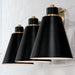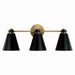Bring a bold, modern look to traditional bath lighting with the Bradley 3-Light Vanity. The Aged Brass accents and crisp metal shades bring distinct style, while the Matte Black exterior and White interior shade finishes create down-light illumination that is perfect for powder rooms or focused task lighting.