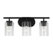 The Oslo three light vanity fixture in Midnight Black offers shadow-free lighting in your powder room, spa, or master bath room. The Oslo lighting collection by is a sleek design, with smooth and clean lines. The Clear Seeded glass adds to this collection's contemporary and minimalist character. Offered in Chrome, Brushed Nickel, Bronze and Midnight Black finishes, the collection includes nine-, five-, and three-light chandeliers, mini pendant, both flush and semi-flush ceiling fixtures, as well as one-, two-, three- and four-light wall/bath fixtures. Both incandescent lamping and ENERGY STAR-qualified LED lamping are available. All fixtures are California Title 24 compliant.