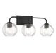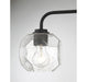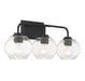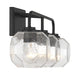 The Baldwin 3-light bath vanity light brings a unique geometric appeal to bathrooms with its clear seeded glass shades that are molded into octagonal facets. These bold shades take center stage and pair nicely with the matte black finish. Baldwin is 9.5" in height, 24" in width and extends 7.5" from the wall. It uses 3 standard size bulbs of up to 60 watts per bulb (bulbs not included).