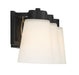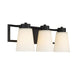 Lighting is the jewelry of the home, which makes this Russo 3-light bath vanity light a beautiful bauble for the bathroom. Attention-grabbing geometric detail is finished in warm brass to pair beautifully with the overall matte black finish. White glass shades ensure bright and even illumination. Russo is 7.25" in height, 24" in width and 6.25" in extension. It uses 3 standard size bulbs of up to 60 watts each (bulbs not included). Damp area rated.