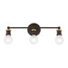 Clean lines and exposed bulb sockets make the Lansdale collection perfect for your mid-mod or transitional bath. The eclectic look is perfect for spaces wanting an urban, minimalistic or industrial touch. With superb craftsmanship and affordable price, this bronze finish combined with antique brass finish accents makes this three-light vanity sconce sure to tastefully indulge your extravagant side.