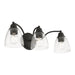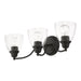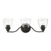 Whether it's style or practical lighting, this vanity sconce is the perfect addition to your bathroom. This three-light fixture from the Montgomery Collection features clear hand-blown glass shades and is shown in a black finish. The clean graceful lines of the back plate complement the shades, creating an understated look that works well in most decors. Classic elegance combines with contemporary appeal to enhance any home in style.