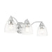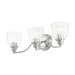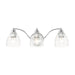 Whether it`s style or practical lighting, this vanity sconce is the perfect addition to your bathroom. This three-light fixture from the Montgomery Collection features clear hand-blown glass shades and is shown in a polished chrome finish. The clean graceful lines of the back plate complement the shades, creating an understated look that works well in most decors. Classic elegance combines with contemporary appeal to enhance any home in style.