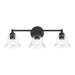 Bring a refined lighting style to your bath area with this Moreland collection three light vanity sconce. Shown in a black finish and clear glass.