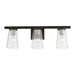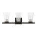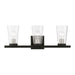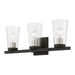 Brighten up your bathroom vanity with the sleek look of the Cityview three light vanity sconce. The tapered clear glass shades and the black finish make a perfect match.