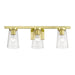 Brighten up your bathroom vanity with the sleek look of the Cityview three light vanity sconce. The tapered clear glass shades and the satin brass finish make a perfect match.