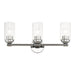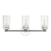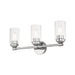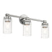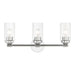 Illuminate your home with a bright design from the Whittier collection. This three-light vanity sconce features a polished chrome finish with clear glass. Perfect for a contemporary or transitional luxury bathroom setting.