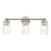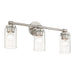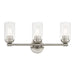 Illuminate your home with a bright design from the Whittier collection. This three-light vanity sconce features a brushed nickel finish with clear glass. Perfect for a contemporary or transitional luxury bathroom setting.