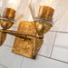 Drawing inspiration from a classic design, this antique gold 3-light vanity light is the perfect pick for any contemporary or traditional space. This Felice design showcases a simple, rectangular 5" square backplate, dome shaped glass shade, and a decorative unique acorn-shaped gold finial. Easily installed over your mirror, this two-light sconce is suitable for damp spaces, and is finished in a beautiful antique gold