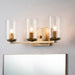 Charming and vintage inspired, the Bolivar 3-light vanity bathroom fixture uses a mixed gold and antique brass finishes to give a genuine and edgy candle style design that shows off the antique gold detail used on the candle sleeve. This three-light bath bar has cylinder shaped clear glass, and uses a modern crisp shape to update your bathroom space. The rectangle back plate finished in a sophisticated brass is the perfect finishing detail.