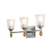 Inspired by 1950s and 60s design, the polished chrome finish and double square backplate of our Vetiver 3-Light vanity light adds charming style to your bathroom space. The simple clear seeded glass, beautifully detailed finial, and the elegant torch-like shape complete the look of this new three-light bathroom lighting fixture.