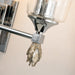 Inspired by 1950s and 60s design, the polished chrome finish and double square backplate of our Vetiver 3-Light vanity light adds charming style to your bathroom space. The simple clear seeded glass, beautifully detailed finial, and the elegant torch-like shape complete the look of this new three-light bathroom lighting fixture.