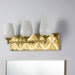 Always looking to add texture and dimension to a room, we created the perfect 3-light bathroom vanity light. The 24 inch back plate with a pressed textured shape creates a modern design completing our intent. Showcasing the elegant aged brass finish and sleek wine glass-shaped, opal glass shades that can be mounted either up or down, we are giving that extra touch to show our attention to design and our love for the details.