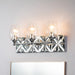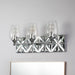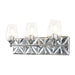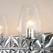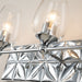 Always looking to add texture and dimension to a room, we created the perfect 3-light bathroom vanity light. The 24 inch back plate with a pressed textured shape creates a modern design completing our intent. Showcasing the elegant polished chrome finish and sleek wine glass-shaped, clear seeded glass shades that can be mounted either up or down, we are giving that extra touch to show our attention to design and our love for the details.