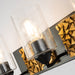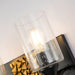 Clean lines and timeless design this triple vanity light is perfect for brightening your bathroom space giving it texture and dimension. Featuring a clean-cut rectangle backplate with textured traditional shapes, simple curved arm and a unique two-toned finish of matte black and antique gold. Showing off its contemporary side, this 3-light bathroom light uses a cylinder shaped clear seeded glass to bring attention to the mix of texture and details that come together in our Bocage collection. Measuring 23" Wide, 8" in height and 6.5" in depth, this three-light vanity light can fit in nearly any space.