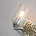 Clean lines and timeless design this triple vanity light is perfect for brightening your bathroom space giving it texture and dimension. Featuring a clean-cut rectangle backplate with textured traditional shapes, simple curved arm and a unique two-toned finish of polished chrome and antique silver. Showing off its contemporary side, this 3-light bathroom light uses a cylinder shaped clear seeded glass to bring attention to the mix of texture and details that come together in our Bocage collection. Measuring 23" Wide, 8" in height and 6.5" in depth, this three-light vanity light can fit in nearly any space.