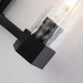 Charm guests with a warm contempory feel in your bathroom and bring unique lighting into your most relaxing space with this 2-light bathroom fixture. Suitable for damp spaces, this two-light vanity light is crafted from metal and features a clean-lined wall mount rectangle shape that has grey textured shapes and is completed with a cylindrical, water glass shade and a forged black finish. Compact enough for any wall, this fixture measures 21" W x 9" H and 4.5" in depth.