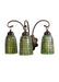 Honeydew Green glass cascades in a Geometric grid on elongated hand crafted shades which are suspended from the gracefully curved arms of this three light vanity finished in Mahogany Bronze.