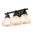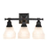 Enjoy the beauty and cozy Americana look with the simple curves and pure design that characterizes the Bungalow design movement. This wall sconce is created of Solid Brass and doubles as a vanity light for fine baths. Three delicate White Art Glass shades are complemented with a warm Craftsman Brown finish. The fixture is handcrafted by highly skilled artisans in our 180,000 square foot manufacturing facility in Yorkville, New York. Glass shades, metal finishes and sconce sizes can be customized to meet your needs. UL and cUL listed for dry and damp locations.