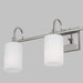 Oak Moore is a universal vanity series available in four finishes.ÃÂ Curved bar detail and etched white shade give it a transitionalÃÂ look.ÃÂ ÃÂ Install the light with glass shades up or down to light up every corner of your room. The shades are made of Etched White glass to cast a soft light throughout your vanity area.