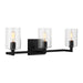 The Fullton three light vanity fixture in Midnight Black is sleek, contemporary, and uber minimalistic. Visual interest is created using a mix of rectangular and round frames, a subtle design detail. Although this collection is contemporary, it can be mixed in with variety of collections with ease.
