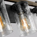 Influenced by both rustic and industrial design, the transitional Angelo chandelier collection by celebrates the beauty of imperfection and the visual impact of mixed materials to create an overall rugged look. The cylindrical Clear Thick Wavy glass shades complement the two-toned finish of Distressed Weathered Oak on the outer structures and a new pitted, richly textured Slated Grey Metal finish on the sloping arms for a rustic but tailored look. Perfect as foyer lighting, living room lighting, or paired over a dining room table, and the largest fixture will be the crowning touch to any great room.