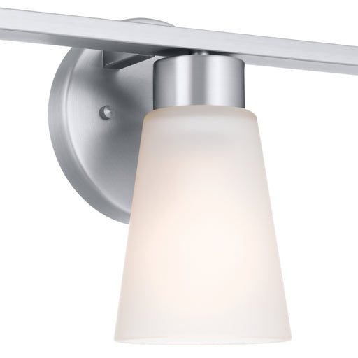 The modern lines of this 24" 3-light bath light fixture in a Brushed Nickel finish with Satin Etched glass will blend into many decors.Details:Prod...