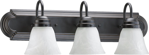 View full detailsQuorum 5094-3-186 Three Light Vanity, Oiled Bronze w/ Faux Alabaster