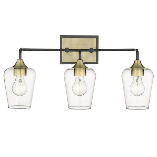 3 light vanity with Aged Brass finish and clear seeded glass.Details:Product Type: Three LightsFinish: Aged BrassShade: Clear Seeded 4.25``x6``Room...