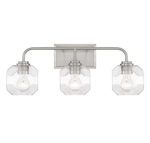 The Baldwin 3-light bath vanity light brings a unique geometric appeal to bathrooms with its clear seeded glass shades that are molded into octagon...