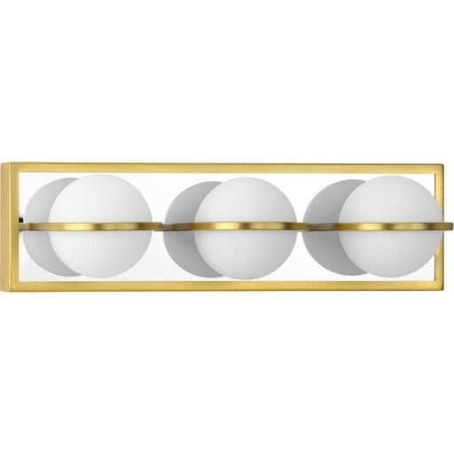 Combine elements of simple geometry with the Pearl LED Collection 3-Light Satin Brass Opal Glass LED Modern Bath Vanity Light. A rectangular frame ...