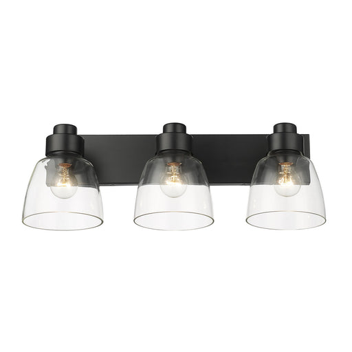 View full detailsGolden 0306-BA3 BLK-CLR Three Light Bath Vanity, Matte Black