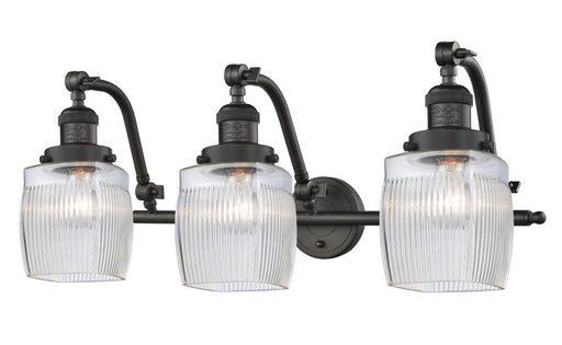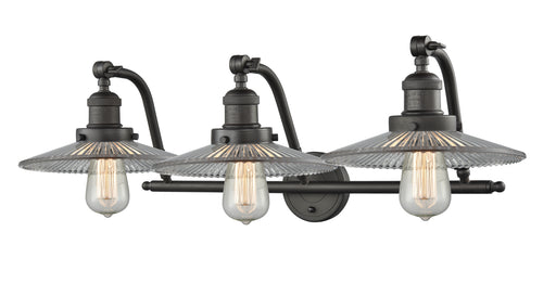Colton - 3 Light - 27 inch - Oil Rubbed Bronze - Clear Halophane Shade - Bath Vanity LightDetails:Product Type: Three LightsFinish: Oil Rubbed Bron...