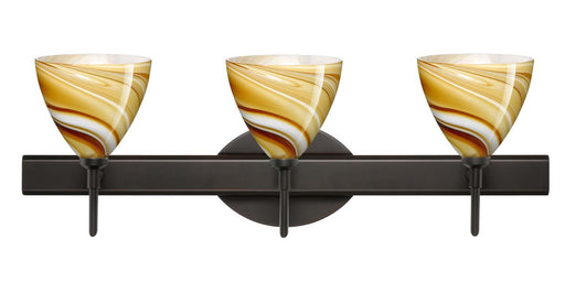 The Jilly Amber Vapor Vanity is a contemporary bath design composed of a transparent Amber globe glass, with a mysterious vapor-like patterning thr...