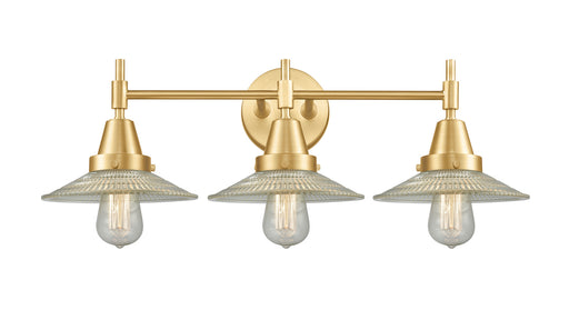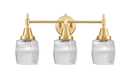 Colton - 3 Light - 24 inch - Satin Gold - Clear Halophane Shade - Bath Vanity LightDetails:Product Type: Three LightsFinish: Satin GoldShade: Thick...