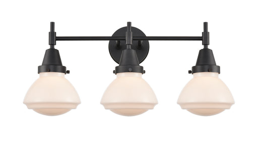 Caden - 3 Light - 26 inch - Matte Black - Matte White Shade - Bath Vanity LightDetails:Product Type: Three LightsFinish: Matte BlackShade: White Ca...