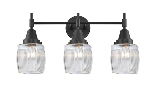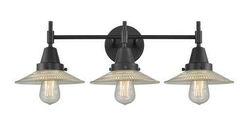Colton - 3 Light - 24 inch - Matte Black - Clear Halophane Shade - Bath Vanity LightDetails:Product Type: Three LightsFinish: Matte BlackShade: Thi...
