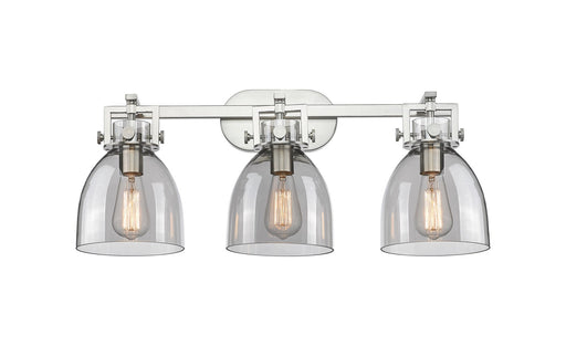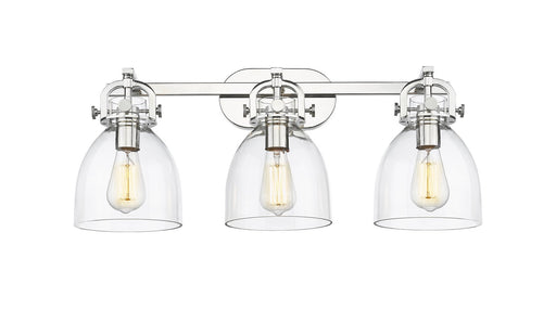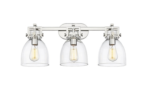 Newton Bell - 3 Light - 27 inch - Brushed Brass - Clear Shade - Bath Vanity LightDetails:Product Type: Three LightsFinish: Brushed BrassShade: Clea...