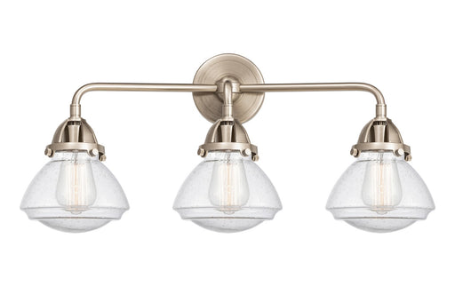 Dover - 3 Light - 23 inch - Brushed Satin Nickel - Seedy Shade - Bath Vanity LightDetails:Product Type: Three LightsFinish: Brushed Satin NickelSha...