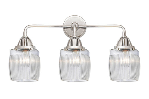 Colton - 3 Light - 24 inch - Polished Chrome - Clear Halophane Shade - Bath Vanity LightDetails:Product Type: Three LightsFinish: Polished ChromeSh...