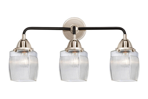 Colton - 3 Light - 24 inch - Black Polished Nickel - Clear Halophane Shade - Bath Vanity LightDetails:Product Type: Three LightsFinish: Black Polis...