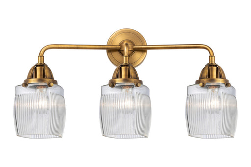 Colton - 3 Light - 24 inch - Brushed Brass - Clear Halophane Shade - Bath Vanity LightDetails:Product Type: Three LightsFinish: Brushed BrassShade:...