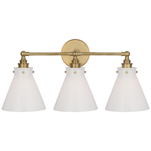 Details:Product Type: Three LightsFinish: Antique-Burnished BrassShade: White GlassDesigner: Chapman & MyersMeasurements:Width / Dia: 24.00"Hei...
