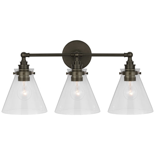 Details:Product Type: Three LightsFinish: BronzeShade: Clear GlassDesigner: Chapman & MyersMeasurements:Width / Dia: 24.00"Height: 11.50"Extens...
